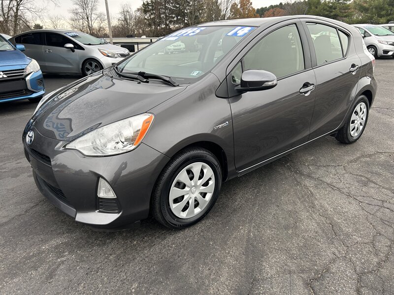 One owner! Completely serviced and ready to go with new tires and PA state inspection. Introducing the 2014 Toyota Prius c Two, a compact hybrid that combines efficiency with practicality. Powered by a 1.5L Hybrid I4 engine producing 99 horsepower, this model excels in fuel economy, achieving an impressive 53 MPG in the city and 46 MPG on the highway. The exterior is finished in a sleek Magnetic Gray Metallic, while the interior features comfortable gray cloth seating. Spacious, reliable and economical. This is going to make anyone a great vehicle. Stop in and check it out, you won't be disappointed. Our dealership offers bank financing at very competitive rates and terms, trade-ins welcome.