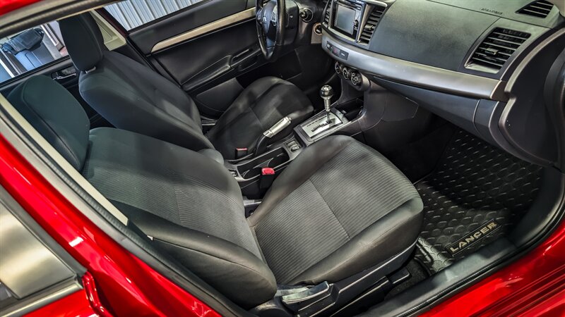Completely serviced and ready to go with a new PA state inspection. 2015 Mitsubishi Lancer SE with the 2.4L I4 (168 hp, 167 ft-lbs) engine, finished in Rally Red Metallic with a Black cloth interior. Comes with the Premium Package and an added rear lip spoiler. Factory-standard features include anti-lock brakes, electronic stability and traction control, front, side and curtain airbags, and a tire-pressure monitoring system for safety; convenience and comfort items include air conditioning, power windows and locks, remote keyless entry, cruise control, steering-wheel audio controls, a 60/40 split-folding rear seat and a factory audio system with auxiliary/USB and Bluetooth connectivity. Below 76,000 miles (averaging under 7,000 miles/year) and rated about 22 MPG city / 29 MPG highway. Our dealership offers bank financing at very competitive rates and terms, trade-ins welcome.