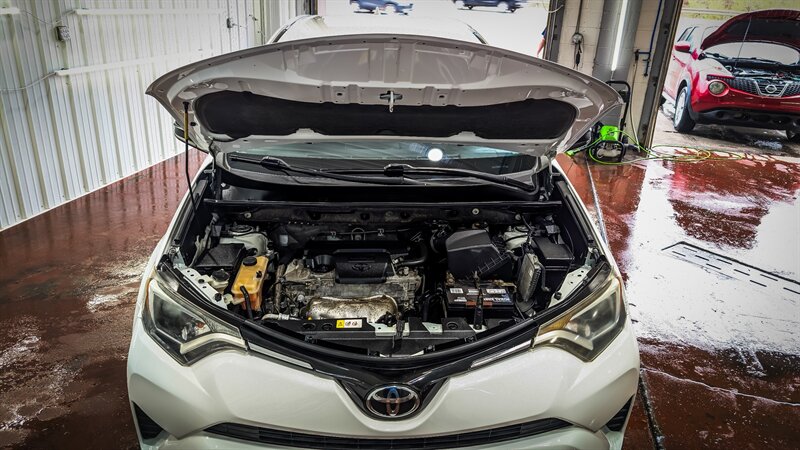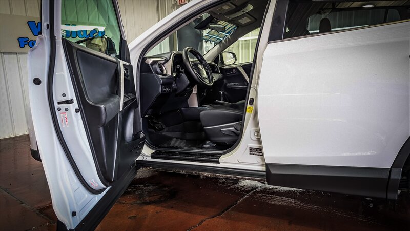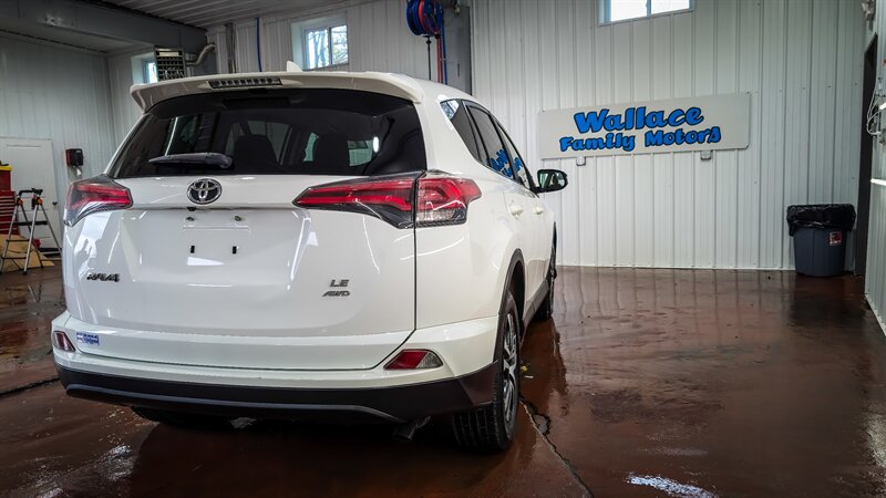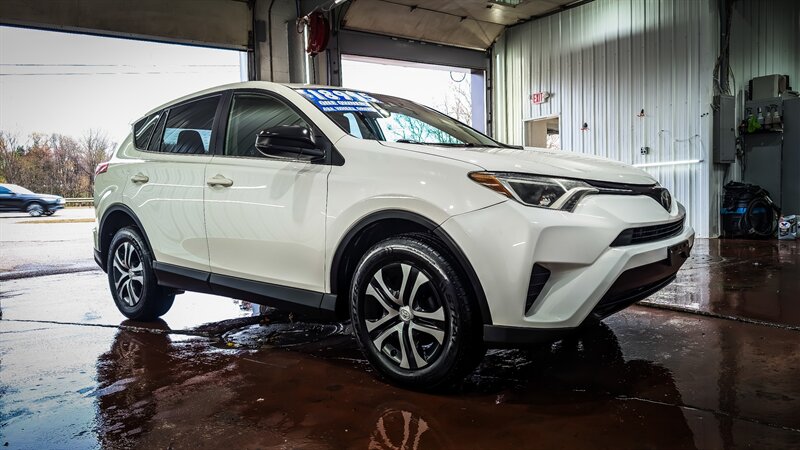One owner! Completely serviced and ready to go with a new PA state inspection. 2018 Toyota RAV4 LE in Super White with Black cloth interior, powered by a 2.5L I4 (176 hp, 172 lb-ft); EPA-rated 22 MPG city / 28 MPG highway. Factory-standard equipment includes Toyota Safety Sense P (pre-collision braking with pedestrian detection, lane departure alert with steering assist, full-speed dynamic radar cruise control, and automatic high beams), rearview camera, Entune infotainment with 6.1" touchscreen, Bluetooth and USB/AUX inputs, six-speaker audio, 60/40 split-folding rear seat, air conditioning, power windows and locks, remote keyless entry, cruise control, tilt/telescoping steering wheel, ABS, traction and stability control, multiple airbags, and steel wheels with covers. This example also includes the All-Weather Liner Package (all-weather floor liners and cargo tray). Our dealership offers bank financing at very competitive rates and terms, trade-ins welcome.