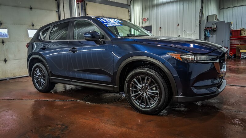 One owner! Completely serviced and ready to go with a new PA state inspection. 2021 Mazda CX-5 Touring in Deep Crystal Blue Mica with Black leather-trimmed interior, powered by a SKYACTIV-G 2.5L I4 (187 hp, 186 lb-ft) and rated 24 MPG city / 30 MPG highway. This example includes the Touring Preferred SV Package plus Low Wall All-Weather Floor Mats and Wheel Locks. Factory standard features include Mazda’s SKYACTIV engineering and i-ACTIVSENSE driver-assist technologies (adaptive cruise control, automatic emergency braking, lane-departure warning, blind-spot monitoring and rear cross-traffic alert), LED lighting, rearview camera, dual-zone automatic climate control, power-adjustable driver seat and heated front seats, Mazda Connect infotainment with Apple CarPlay/Android Auto, Bluetooth and USB connectivity, keyless entry with push-button start, and alloy wheels. Our dealership offers bank financing at very competitive rates and terms, trade-ins welcome.