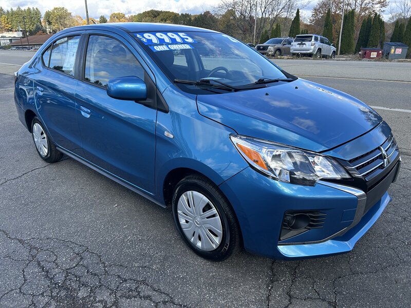 Completely serviced and ready to go with new tires and PA state inspection. The 2021 Mitsubishi Mirage G4 ES is a compact sedan designed for efficiency and practicality. Powered by a 1.2L I3 engine, it delivers 78 horsepower and 74 lb-ft of torque, ensuring a nimble driving experience. The striking Sapphire Blue Metallic exterior is complemented by a sleek Dark Gray interior, providing a modern aesthetic. Standard features include a 7-inch touchscreen display with Apple CarPlay and Android Auto compatibility, allowing for seamless smartphone integration. The vehicle also comes equipped with Bluetooth connectivity, a rearview camera, and a four-speaker audio system. Safety features include a suite of airbags, stability control, and a tire pressure monitoring system. With impressive fuel economy ratings of 35 MPG in the city and 41 MPG on the highway, the Mirage G4 ES is an excellent choice for those seeking an economical and reliable vehicle. Our dealership offers bank financing at very competitive rates and terms, trade-ins welcome.