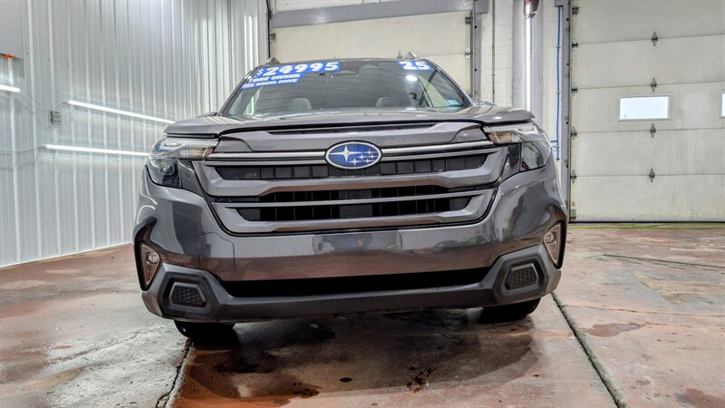 One owner! Completely serviced and ready to go with a new PA state inspection. The 2025 Subaru Forester Premium is powered by a 2.5L H4 engine delivering 180 hp and 178 lb-ft of torque, paired with a Lineartronic CVT and Subaru’s Symmetrical All-Wheel Drive for steady traction in varied conditions. EPA fuel economy is 26 MPG city and 33 MPG highway. Factory-standard features include the EyeSight driver-assist suite (adaptive cruise control, pre-collision braking, lane-keep assist and lane-departure warning), LED headlights, roof rails, 17-inch alloy wheels, and a practical 60/40-split folding rear seat with cloth upholstery. Comfort and convenience items include an infotainment system with Apple CarPlay and Android Auto, Bluetooth and USB connectivity, a rearview camera, remote keyless entry, automatic climate control, a multi-function steering wheel, and a full complement of airbags and electronic stability control. Our dealership offers bank financing at very competitive rates and terms, trade-ins welcome.